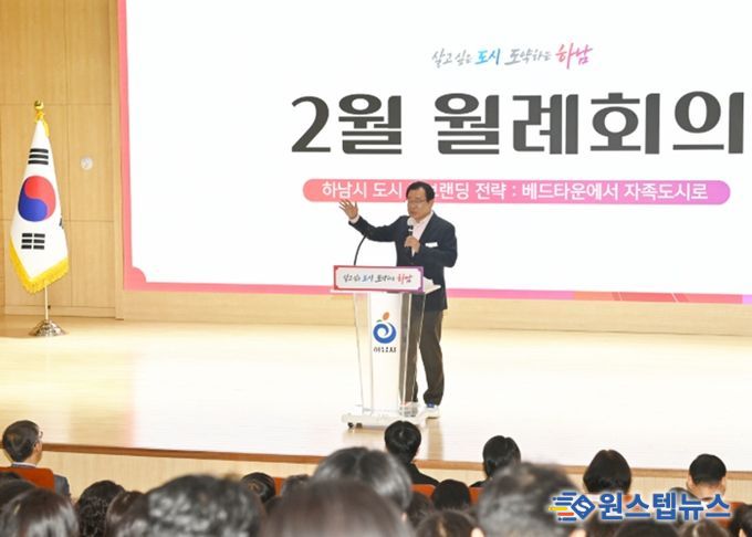 원스텝뉴스 이병희 기자 | 하남시는 4일 별관 대강당에서 올해 첫 월례회의를 개최하고, 캠프콜번 개발 본격화 등 시정 주요 성과를 공유하며 ‘글로벌 경제 중심 도시 하남’을 향한 비전을 제시했다.