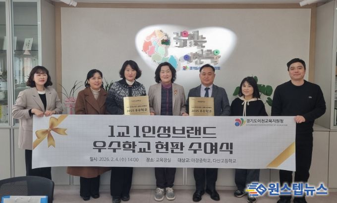 원스텝뉴스 이병희 기자 | 경기도이천교육지원청은 2월 4일 교육장실에서 『2025 1교 1인성브랜드 우수교 현판 수여식』을 개최했다.