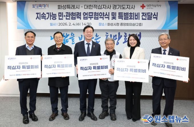 원스텝뉴스 이병희 기자 | 화성특례시와 대한적십자사 경기도지사가 4일 화성시청에서 지속가능한 민·관협력 거버넌스 구축을 위해 업무협약을 체결했다.