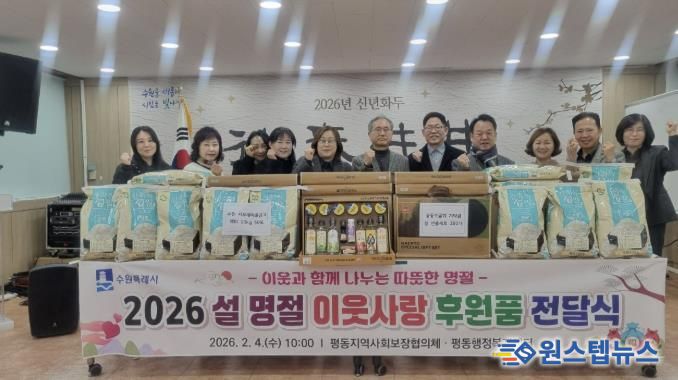 원스텝뉴스 이병희 기자 | 수원시 권선구 평동은 지난 4일, 설 명절을 앞두고 소외된 이웃을 돕기 위한 ‘2026년 설 맞이 사랑의 물품 전달식’을 가졌다.