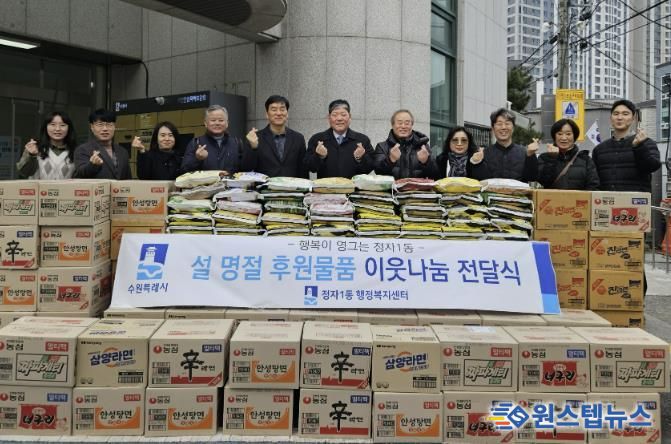 원스텝뉴스 이병희 기자 | 정자1동 행정복지센터는 2월 4일 설 명절을 앞두고 관내 단체, 기업, 개인 등에서 기탁한 성금과 물품을 어려운 이웃들에게 전달하는 ‘설 명절 이웃사랑 나눔 전달식’을 개최했다.