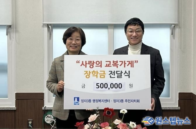 송근숙 정자3동장은 “매년 사랑의 교복가게를 통해 의미 있는 나눔을 실천해 주시는 주민자치회에 감사드린다”며 “기탁해 주신 장학금이 꼭 필요한 학생에게 잘 전달될 수 있도록 하겠다”고 말했다.