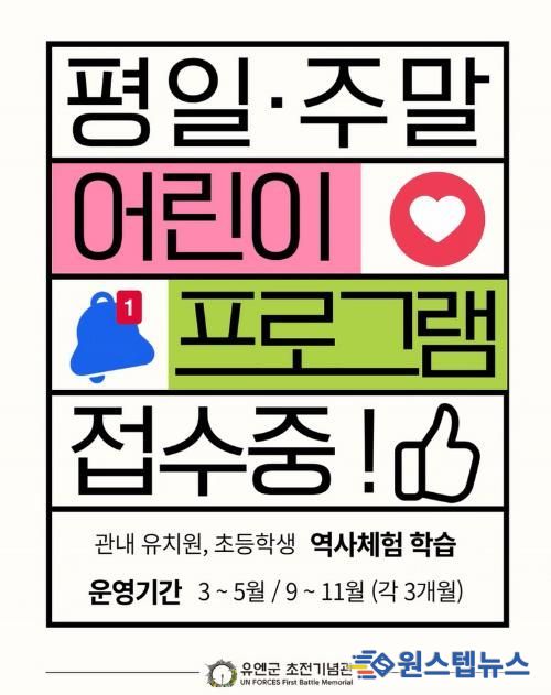 원스텝뉴스 이병희 기자 | 오산시 유엔군 초전기념관은 2026년도 어린이 교육 프로그램 운영을 앞두고 지난 4일부터 예약 접수를 시작했다고 밝혔다.