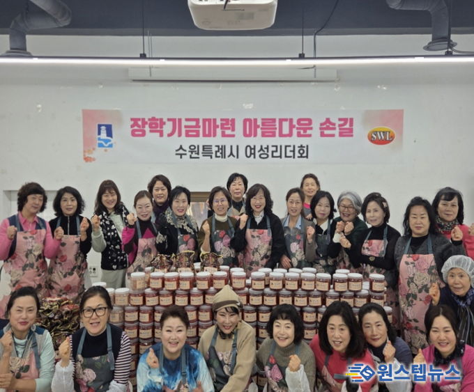 김미애 수원시여성리더회 총회장과 이지영 수원시여성단체협의회 명예회장 등 회원 20여 명이 참여해 명란젓과 낙지젓 등 4종의 젓갈을 소포장해 판매했다. 수익금은 장학금으로 기부할 예정이다.