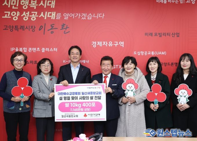 원스텝뉴스 이병희 기자 | 고양특례시는 지난 4일, 일산서구 주엽동에 소재한 일산새중앙교회로부터 지역 내 취약계층을 위한 쌀 400포를 기부받았다고 밝혔다.