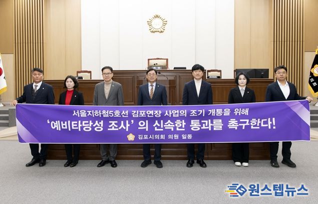 원스텝뉴스 이병희 기자 | 김포시의회는 5일 열린 제265회 임시회 제2차 본회의에서 시의원 14명이 공동으로 발의한 ‘서울지하철5호선 김포 연장사업 신속 예비타당성 조사 통과 촉구 결의안’을 채택했다.