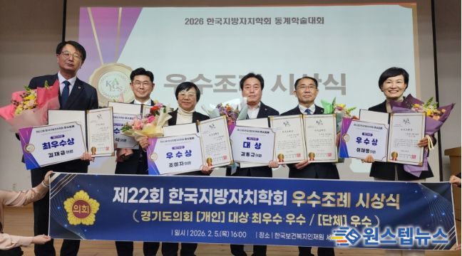 원스텝뉴스 이병희 기자 | 경기도의회가 5일 ‘제22회 한국지방자치학회 우수조례 시상식’에서 개인부문 대상과 단체부문 우수상 등 총 8건을 수상하며 전국 최고의 입법 역량을 입증했다.