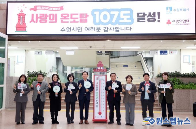 원스텝뉴스 이병희 기자 | 수원특례시의회는 2월 5일, 시청 본관 1층 로비에서 열린 ‘사랑의 온도탑’ 폐막식에 참석해 시민과 함께한 나눔의 의미를 되새겼다.