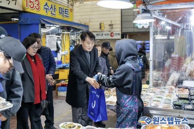 하 시장은 군포역전시장, 산본시장을 차례로 찾아 온누리상품권으로 떡, 과일, 전 등 먹거리 물품을 직접 구입했다. 전통시장을 돌며 시장 상인들과 새해 인사를 나누고 물가 상승 등으로 어려움을 겪고 있는 현장의 목소리를 경청하는 시간도 가졌다. 이날 구입한 물품은 관내 아동 및 청소년복지시설 5곳에 전달됐다.