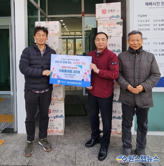 원스텝뉴스 이병희 기자 | 지난 5일, 구세군수원영문에서 수원시 팔달구 매교동에 설 명절을 앞두고 풍성한 명절 분위기를 조성하여 기쁨을 나누고자 관내 어려운 이웃들에게 180만원 상당의 식료품 선물 세트 30박스를 후원했다.