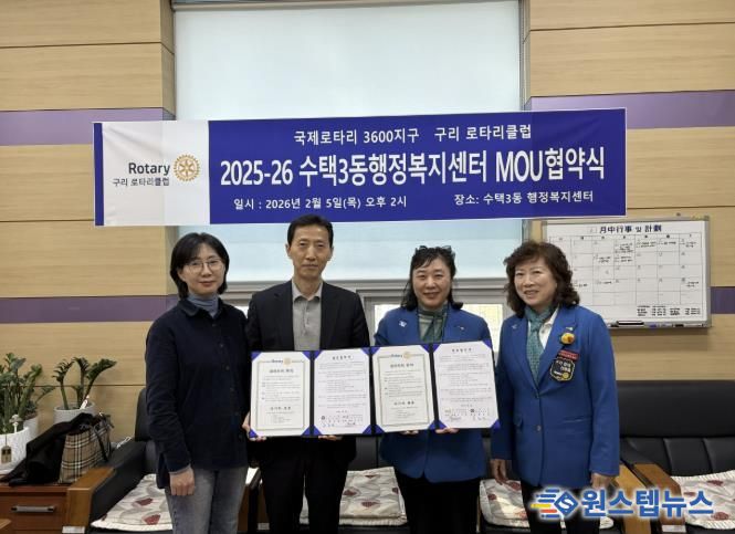 원스텝뉴스 이병희 기자 | 구리시 수택3동 행정복지센터는 지난 5일, 구리로타리클럽과 지역사회 취약계층의 복지 증진과 나눔 문화 확산을 위한 업무 협약을 체결했다고 밝혔다.