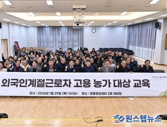원스텝뉴스 이병희 기자 | 양평군은 지난 1월 29일 오후 2시부터 5시까지 양동면 문화센터 3층 다목적회관에서 ‘2026년도 외국인 계절근로자 고용농가 대상 교육’을 실시했다.
