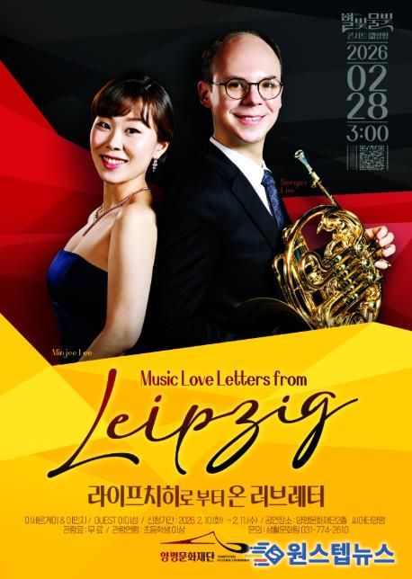 원스텝뉴스 천규영 기자 | 양평문화재단은 오는 28일 오후 3시, 양평문화재단 2층 시어터양평에서 ‘별빛물빛 콘서트 in 양평’ 2월 정기공연으로 클래식 공연 《라이프치히로부터 온 러브레터(Music Love Letters from Leipzig)》를 선보인다.