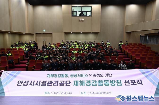 원스텝뉴스 이병희 기자 | 안성시시설관리공단은 지난 4일 안성시평생학습관에서 전 임직원이 참여한 가운데 재해경감활동방침 선포식을 실시했다.