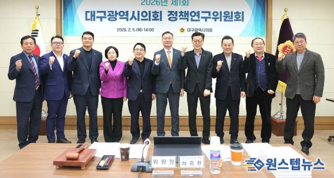 원스텝뉴스 이병희 기자 | 대구광역시의회는 2월 5일 오후 2시, 시의회 3층 회의실에서 ‘2026년 제1회 대구광역시의회 정책연구위원회’를 개최해, 2025년에 완료된 의원 정책연구의 추진 과정과 내용에 대한 적절성 등을 중점 점검하고, 2026년 상반기의 연구과제로 ‘대구·경북 의회통합 방안 연구’를 심의·의결했다.