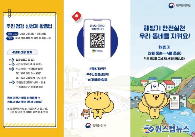 시 관계자는 "해빙기에는 옹벽과 석축, 사면 등에서 안전사고 위험이 커진다"라며 "생활 주변에 위험이 우려되는 시설물이 있으면 주민점검신청제를 적극적으로 활용해 주길 바란다"라고 말했다.