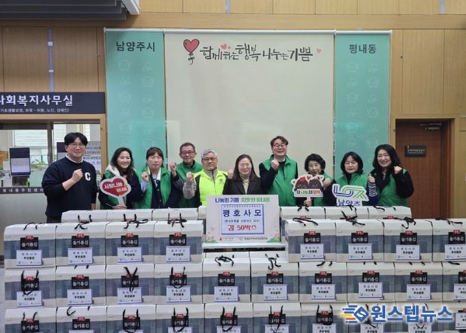 원스텝뉴스 이병희 기자 | 남양주시는 지난 5일 평내호평을 사랑하는 모임이 설 명절을 맞아 김 선물세트 50박스를 평내동 지역사회보장협의체에 기탁했다고 6일 밝혔다.