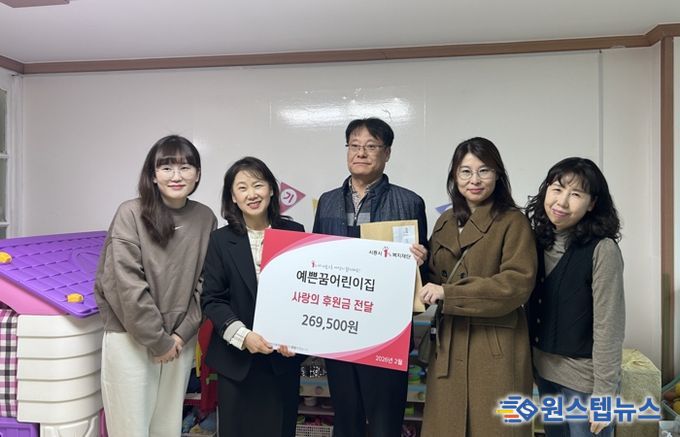 원스텝뉴스 이병희 기자 | 시흥시 연성동 행정복지센터에 지난 2월 6일 연성동 예쁜꿈어린이집이 지역사회 내 취약계층을 돕기 위한 후원금 269,500원을 기탁했다.