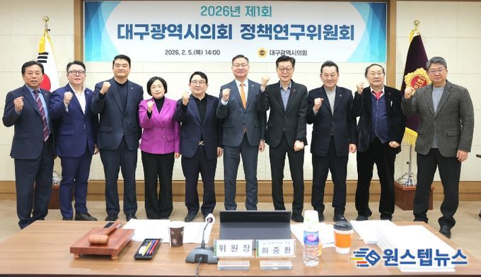 원스텝뉴스 이병희 기자 | 대구광역시의회는 2월 5일 오후 2시, 시의회 3층 회의실에서 ‘2026년 제1회 대구광역시의회 정책연구위원회’를 개최해, 2025년에 완료된 의원 정책연구의 추진 과정과 내용에 대한 적절성 등을 중점 점검하고, 2026년 상반기의 연구과제로 ‘대구·경북 의회통합 방안 연구’를 심의·의결했다.
