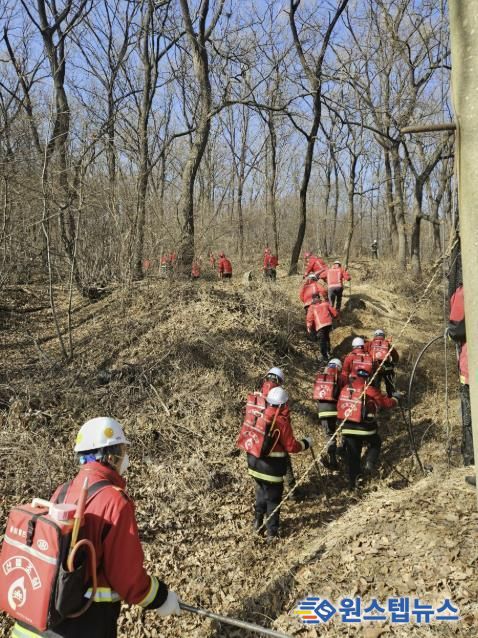훈련은 헬기와 산불진화대를 활용한 공중·지상 합동 진화 대응을 중심으로 진행됐다. 특히 불길 확산을 막기 위한 방화선 구축과 현장 안전관리 등 대응 전반을 면밀하게 점검했으며, 여러 기관이 동시 투입되는 상황에서 기관 간 역할 분담과 협조 체계가 원활히 작동하는지 여부를 확인했다.