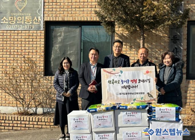 원스텝뉴스 이병희 기자 | 경기도광주하남교육지원청은 설 명절을 맞아 9일(월), 광주시 소재 장애인 거주시설 '소망의 동산'을 방문해 이웃사랑을 실천하는 나눔 행사를 진행했다.