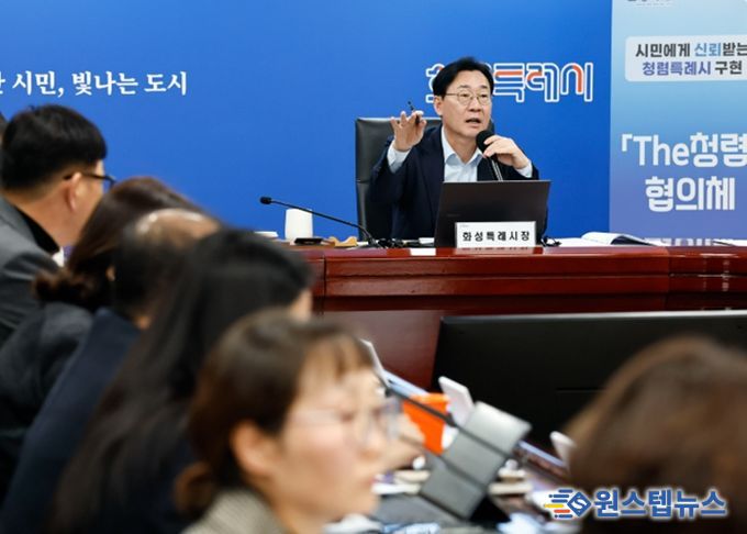 원스텝뉴스 이병희 기자 | 화성특례시는 9일 시청 상황실에서 정명근 시장을 단장으로 실국장단 및 구청장 등 4급 이상 고위직 공무원으로 구성된 '더 청렴' 협의체 회의를 개최했다.