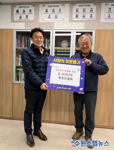 이번 후원은 영진건설㈜이 200만 원, 천연건설㈜이 100만 원을 각각 기탁한 것으로, 전달된 후원금은 설 명절을 앞두고 경제적 어려움을 겪는 저소득 가구와 취약계층을 지원하는 데 사용될 예정이다.