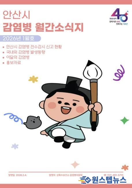 소식지는 ▲안산시 감염병 전수 감시 신고 현황 ▲국내외 감염병 발생 동향 ▲이달의 감염병 ▲홍보자료 등 총 4가지 분야로 구성된다. 매월 초 안산시 상록수·단원보건소 누리집에 게시되며 관내 의료기관 및 학교 등에도 배포될 예정이다.