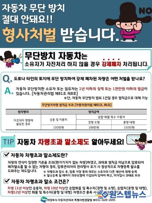 이와 함께 의무보험 미가입 차량 안내 문자 발송 시 ‘무단방치 근절’ 문구를 포함하는 등 자발적인 차량 처리를 유도하는 맞춤 홍보 활동도 병행한다.