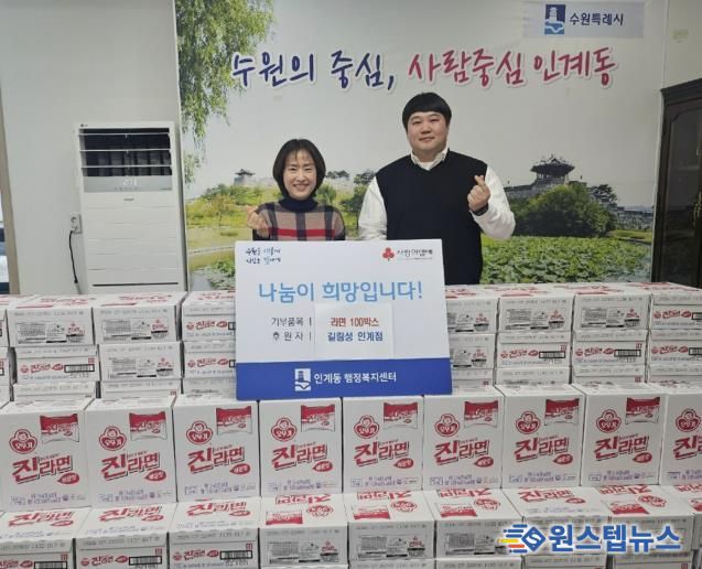 원스텝뉴스 이병희 기자 | 지난 9일, 길림성 인계점이 다가오는 설을 맞이하여 수원시 팔달구 인계동에 라면 100박스를 기부했다.