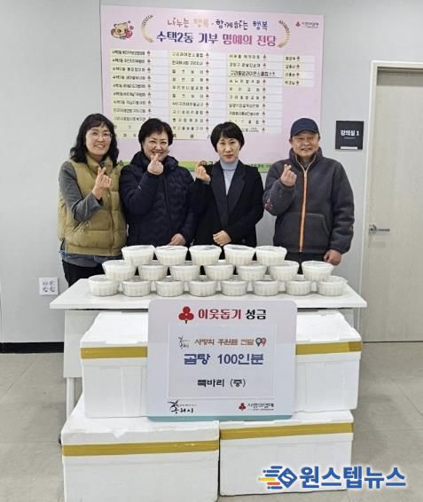 원스텝뉴스 이병희 기자 | 구리시 수택2동 행정복지센터는 지난 2월 9일, 지역 음식점 뚝바리로부터 설 명절을 맞아 설렁탕 100인분을 후원받아 관내 저소득 취약계층에 전달했다고 밝혔다.