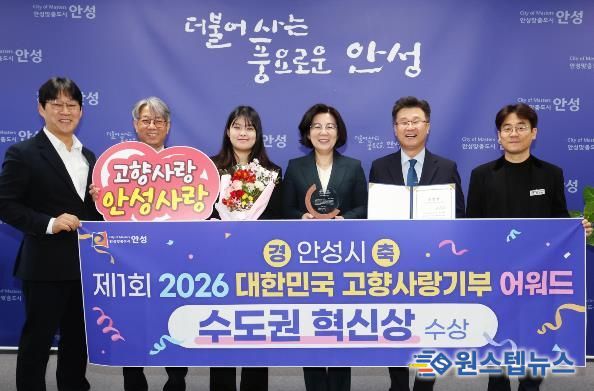 원스텝뉴스 이병희 기자 | 안성시는 지난 2월 9일 한국프레스센터에서 열린 제1회 '2026 고향사랑기부제 어워드'에서 ‘수도권 혁신상’을 수상하며, 고향사랑기부제 운영 성과를 대외적으로 인정받았다고 밝혔다.