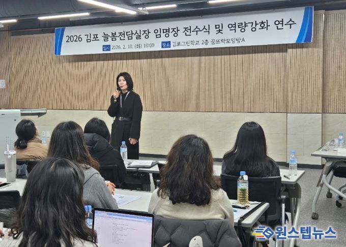 원스텝뉴스 이병희 기자 | 경기도김포교육지원청은 2월 10일 2026 늘봄전담실장 25명을 대상으로 임명장 전수식과 함께 초등 방과후·돌봄 교육 운영의 전문성 및 현장 대응 역량 강화를 위한 ‘2026 늘봄전담실장 역량강화 연수’를 실시했다.