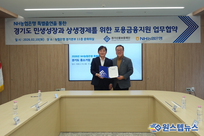 이날 농협은행 경기본부는 경기신용보증재단과‘2026년 경기도 민생성장과 상생경제를 위한 포용금융지원 업무협약’을 체결하고 도내 중소기업과 소상공인을 위해 1,800억원 규모의 대출을 지원할 예정이다.