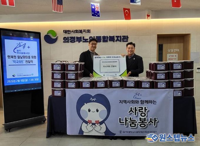 원스텝뉴스 이병희 기자 | 의정부시는 2월 9일 의정부노인종합복지관이 설 명절을 맞아 을지대학교 한마음봉사단의 지원으로 독거노인 80명에게 떡국떡, 만두, 사골곰탕 등으로 구성된 ‘설 명절 떡국 나눔 세트’를 전달했다.