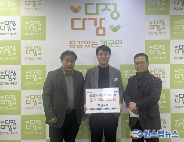 임병희 개군면장은 “지역사회를 위해 매년 따뜻한 나눔을 실천해 주신 계전교회 목사님과 신도 여러분께 깊이 감사드린다”며 “기탁해 주신 성금은 도움이 필요한 이웃들에게 소중히 전달될 수 있도록 하겠다”고 말했다.