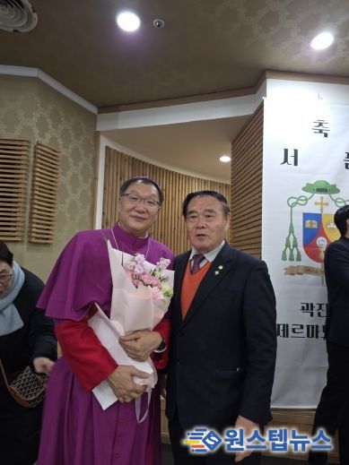 원스텝뉴스 이병희 기자 | 수원특례시의회 이재식 의장은 2월 11일(수) 오후 2시, 장안구 정자동 주교좌성당에서 열린 천주교 수원교구 곽진상 제르마노 주교 서품식에 참석해 신임 보좌주교의 서품을 축하했다.