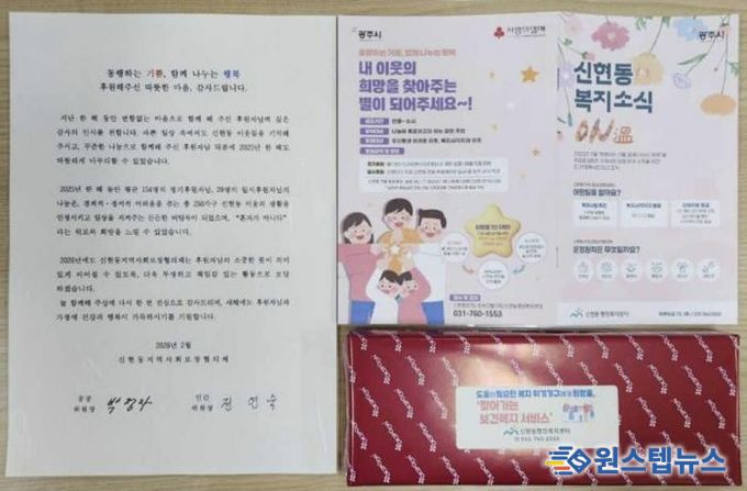 원스텝뉴스 이병희 기자 | 광주시 신현동 지역사회보장협의체는 2025년 한 해 동안 신현동 내 어려운 이웃을 위해 성금과 물품을 기부한 후원자 183명에게 감사 서한을 발송했다고 12일 밝혔다.