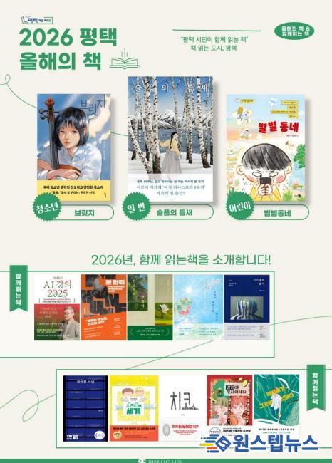 원스텝뉴스 이병희 기자 | 평택시의 대표 시민 독서 운동인 '평택, 책을 택하다'에서 2026년 ‘올해의 책’을 선정했다. 시민공모를 통해 추천된 224권의 도서 중 시민도서선정단의 4차례 토론을 거쳐 '슬픔의 틈새/이금이 지음, 사계절', '브릿지/문경민 지음, 우리학교', '별별동네/이묘신 지음, 천개의바람' 3권을 확정했다.