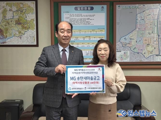 이번 기부는 MG송탄새마을금고의 지역 상생과 지역사회 공헌사업의 하나로, 경제적 어려움을 겪고 있는 지역 내 취약계층의 생활 안정과 복지 증진을 돕기 위해 마련됐다. 전달된 상품권은 생필품 구매 등에 활용될 예정으로, 실질적인 도움이 될 것으로 기대된다.