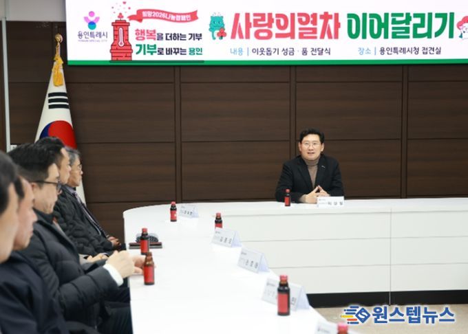 이상일 시장은 12일 시청 접견실에서 ‘사랑의열차 이어달리기’ 성금·품 전달식을 열고, 지역 내 기업·기관·단체 관계자들과 나눔의 시간을 가졌다.