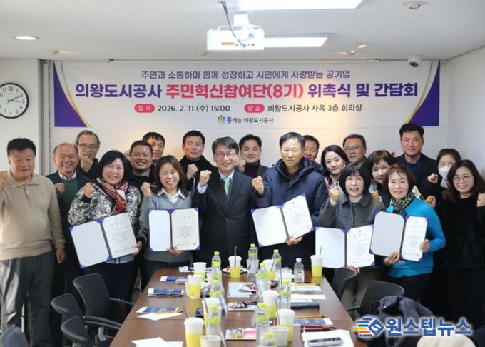원스텝뉴스 이병희 기자 | 의왕도시공사가 지역주민과 고객들의 경영 참여 확대와 소통 강화를 위해 2월 11일 본사 3층 회의실에서 「2026년 주민혁신참여단 8기 위촉식 및 간담회」를 개최했다.