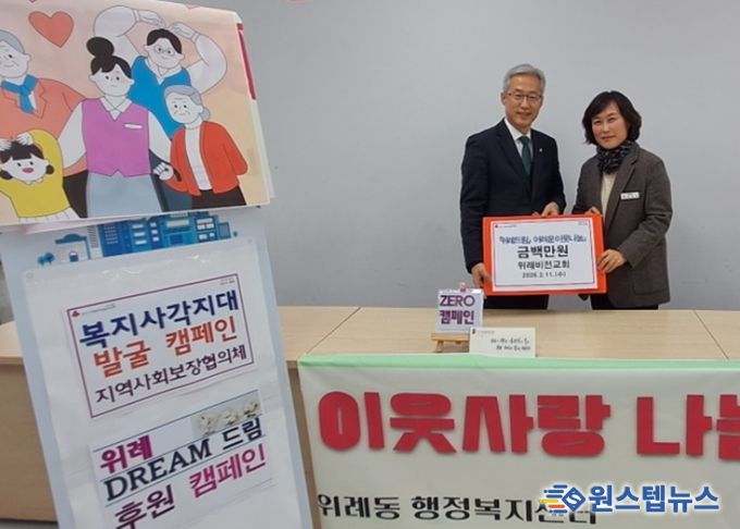 원스텝뉴스 이병희 기자 | 위례비전교회는 11일 취약계층을 위해 성금100만원을 지역사회보장협의체에 기탁했다.
