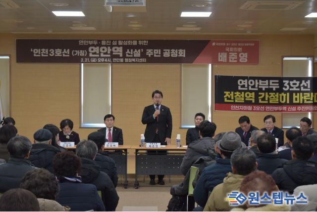 배준영 국회의원은 지난해 2월 ‘인천 3호선 연안역 신설 주민공청회’를 주최해, 연안부두 인근 주민의 의견을 인천시와 국토교통부에 전달하는 등 도시철도망이 인천 곳곳까지 이어질 수 있도록 최선을 다 해왔다.