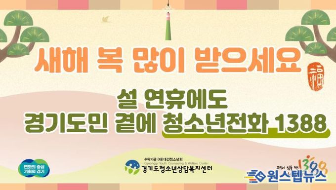원스텝뉴스 이병희 기자 | 경기도는 설 당일을 포함해 14~18일 연휴 기간에도 위기 청소년 심리 상담 서비스 ‘청소년전화1388’을 24시간 운영한다.