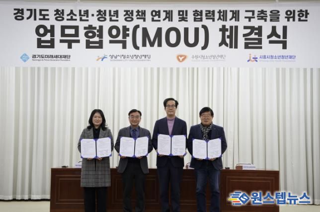 원스텝뉴스 이병희 기자 | (재)시흥시청소년청년재단은 지난 2월 12일 경기도청 옛청사 신관 4층 대회의실에서 경기도미래세대재단, 수원시청소년청년재단, 성남시청소년청년재단과 함께 ‘청소년ㆍ청년 정책 연계 및 협력체계 구축’을 위한 업무협약을 체결했다.