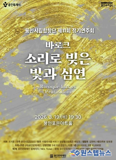 원스텝뉴스 천규영 기자 | 용인문화재단은 오는 3월 19일 오후 7시 30분, 포은아트홀에서 용인시립합창단 제11회 정기연주회 '바로크 – 소리로 빚은 빛과 심연'을 개최한다.