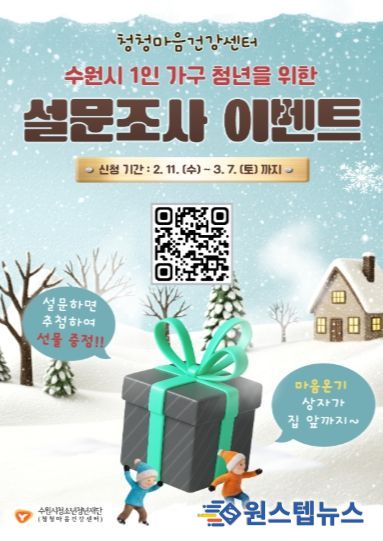 원스텝뉴스 이병희 기자 | 수원시청소년청년재단(이사장 최종진)은 정서적 응원이 필요한 1인 가구 청년을 위해 '2026. 1인 가구 청년 정서지원 사업' 참여자를 2월 11일부터 3월 7일까지 모집한다고 밝혔다.