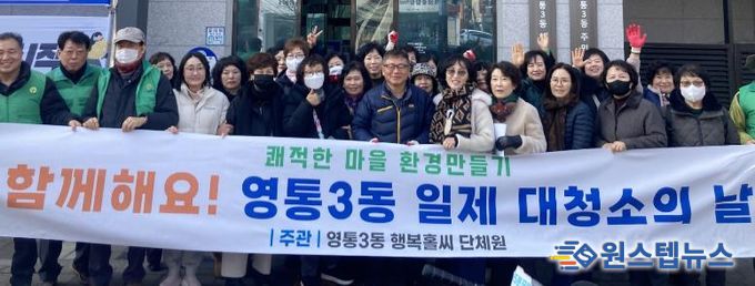 원스텝뉴스 이병희 기자 | 수원시 영통구 영통3동 행정복지센터는 지난 12일 설 명절을 앞두고 지역 환경 정비와 깨끗한 마을 조성을 위해 통장협의회와 함께 ‘설맞이 일제 대청소의 날’을 실시했다.
