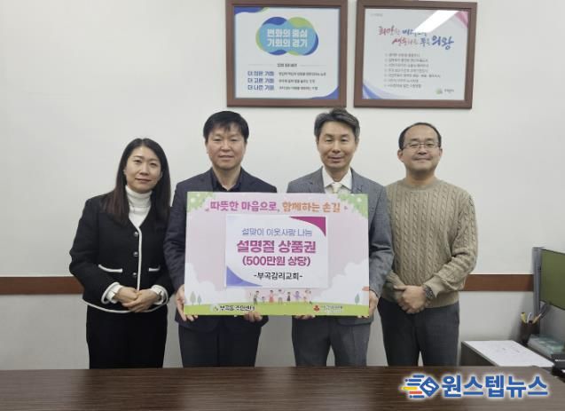 원스텝뉴스 이병희 기자 | 의왕시 부곡동 부곡감리교회가 2월 12일 설 명절을 맞아 지역 내 어려운 이웃을 돕기 위해 500만원 상당의 상품권을 후원하며 지역사회를 위한 따뜻한 나눔을 실천했다.